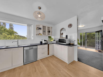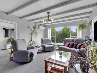 1970's split level home sitting on a large private section. The updated interior is neutral toned, painted beamed ceiling and modern kitchen with walk-in pantry/laundry. The top story has a second living space and master with ensuite. The property is situated in sort after street and sitting on a rear site with rural views across the river on the boundary. There is a quiet pleasure in watching the birds flying around the garden while preparing a meal. The terraced site has fruit trees, established gardens, and private back yard with room for the trampoline and the pool, internal access double garage, concrete drive and off street parking. This property would suit a family or the home professional, the office has own access for clients.